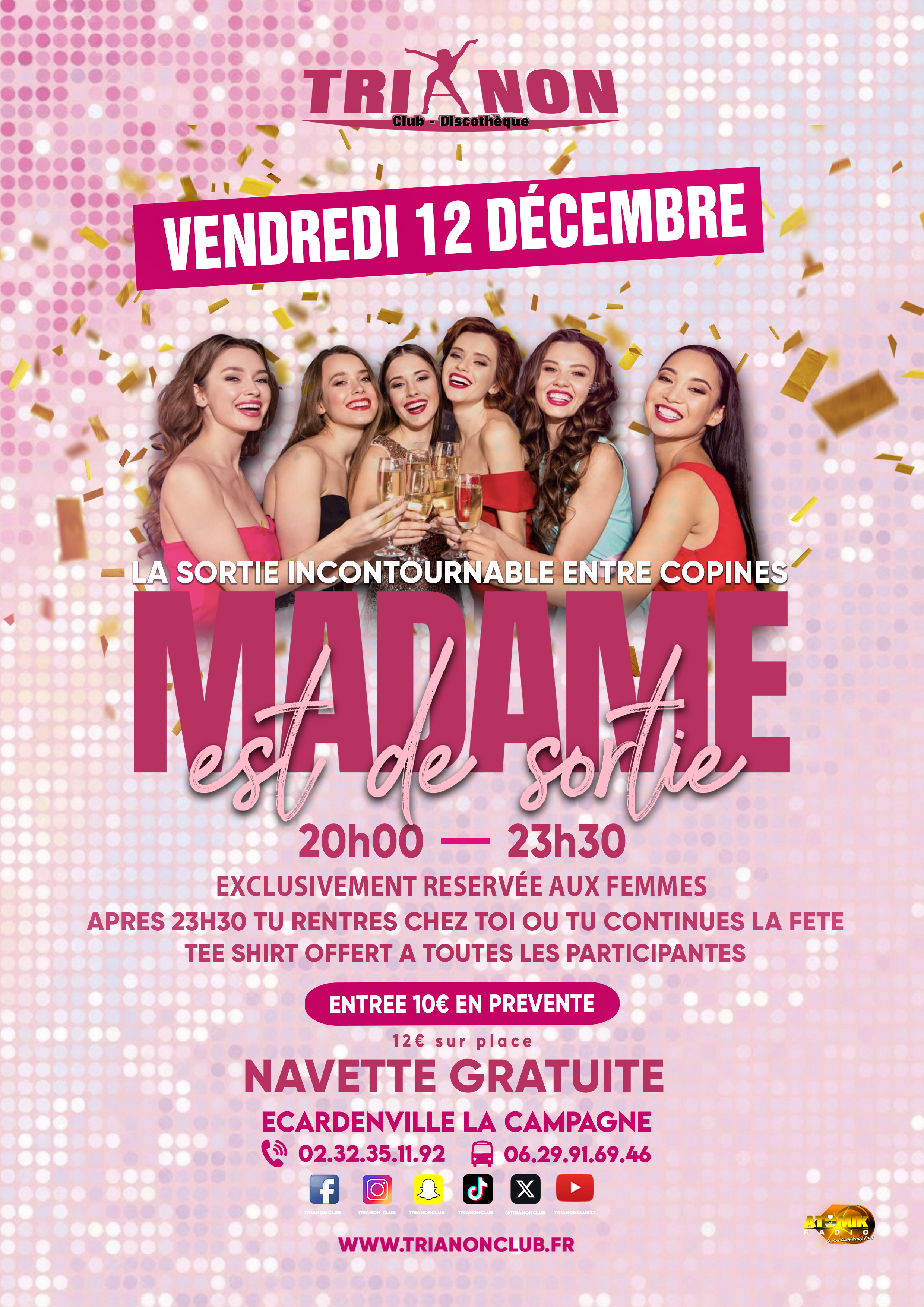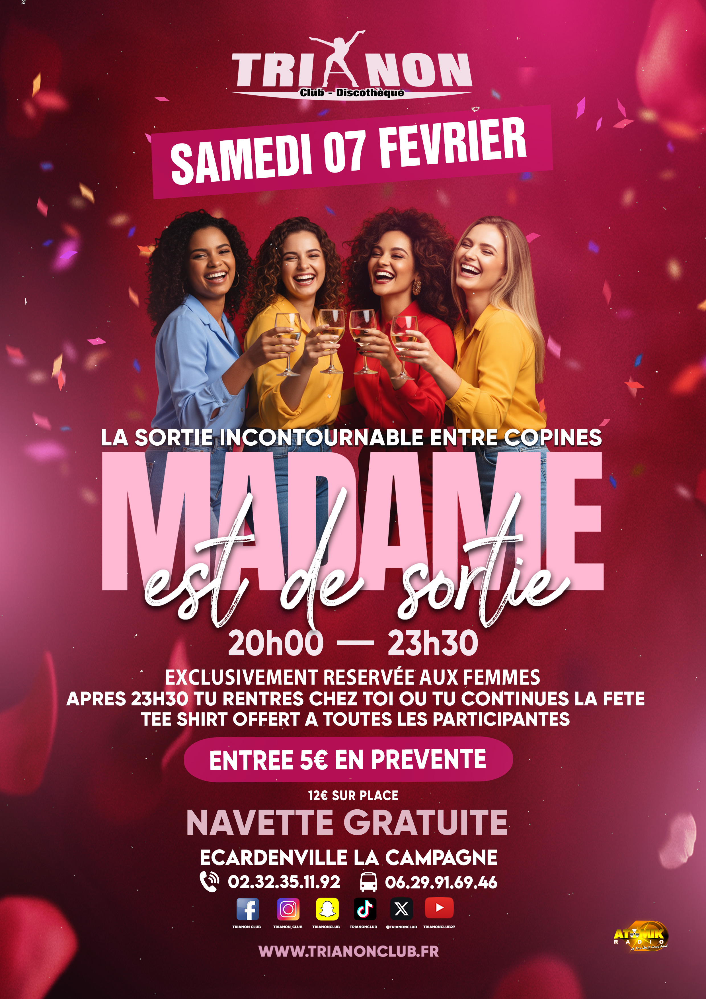 Soirée MADAME est de SORTIE (Exclusivement réservé aux femmes de 20h à 23h30)